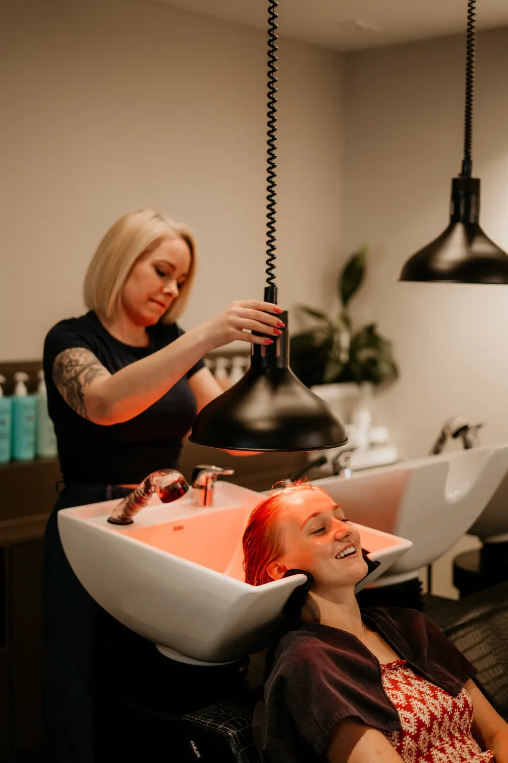 Tijdens de behandeling kun je heerlijk ontspannen onder onze infraroodlampen. De warmte zorgt ervoor dat de verzorging dieper in het haar kan doordringen, terwijl jij geniet van een rustmoment in de salon.